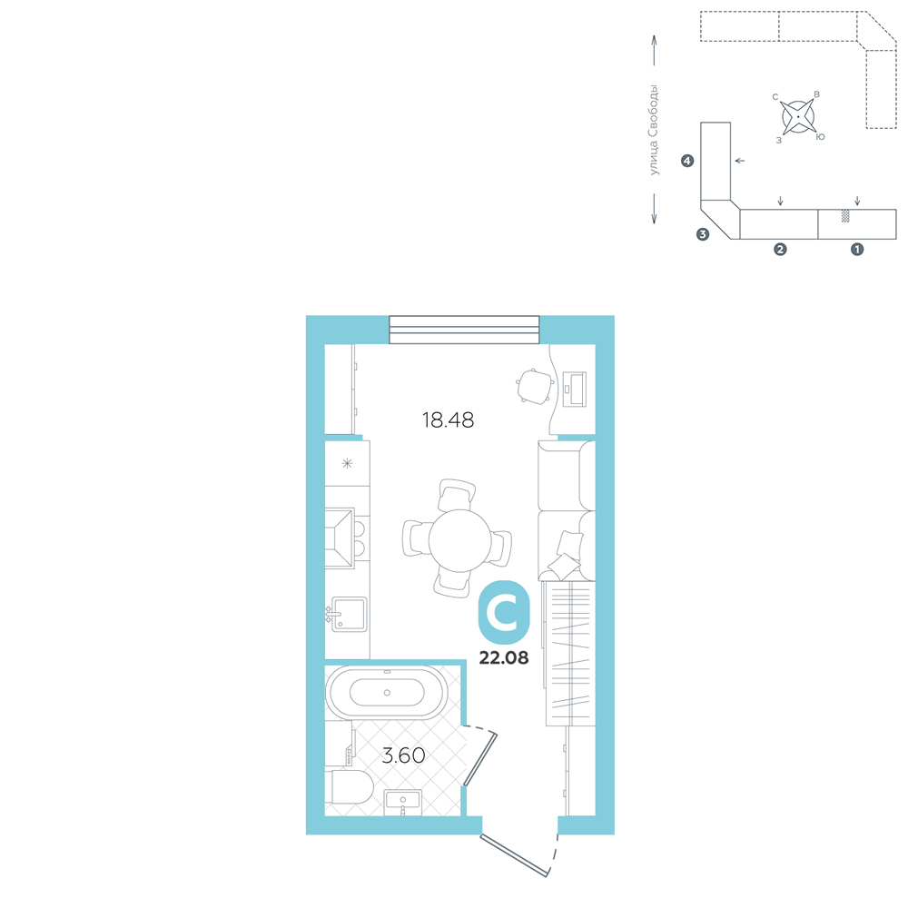 Студия, 22.1 м²