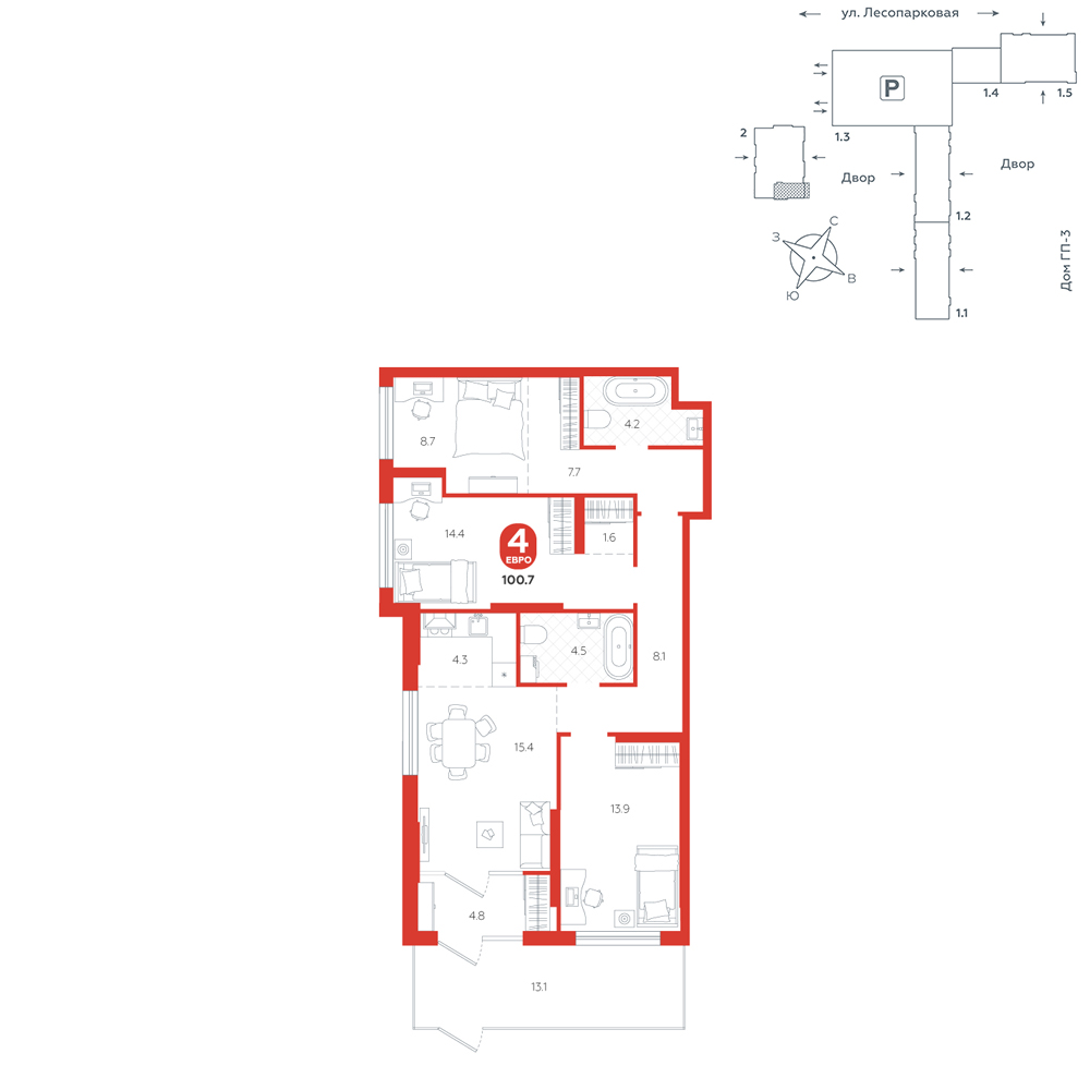 4-комнатная, 100.7 м²