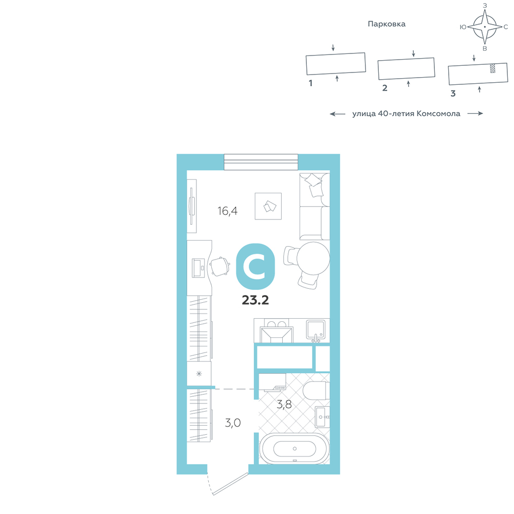 Студия, 23.2 м²